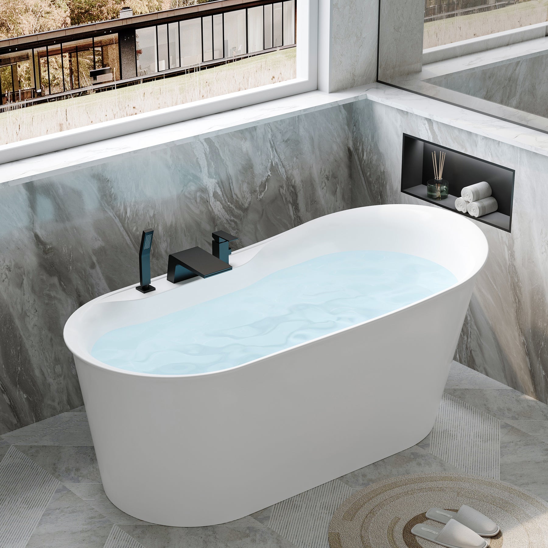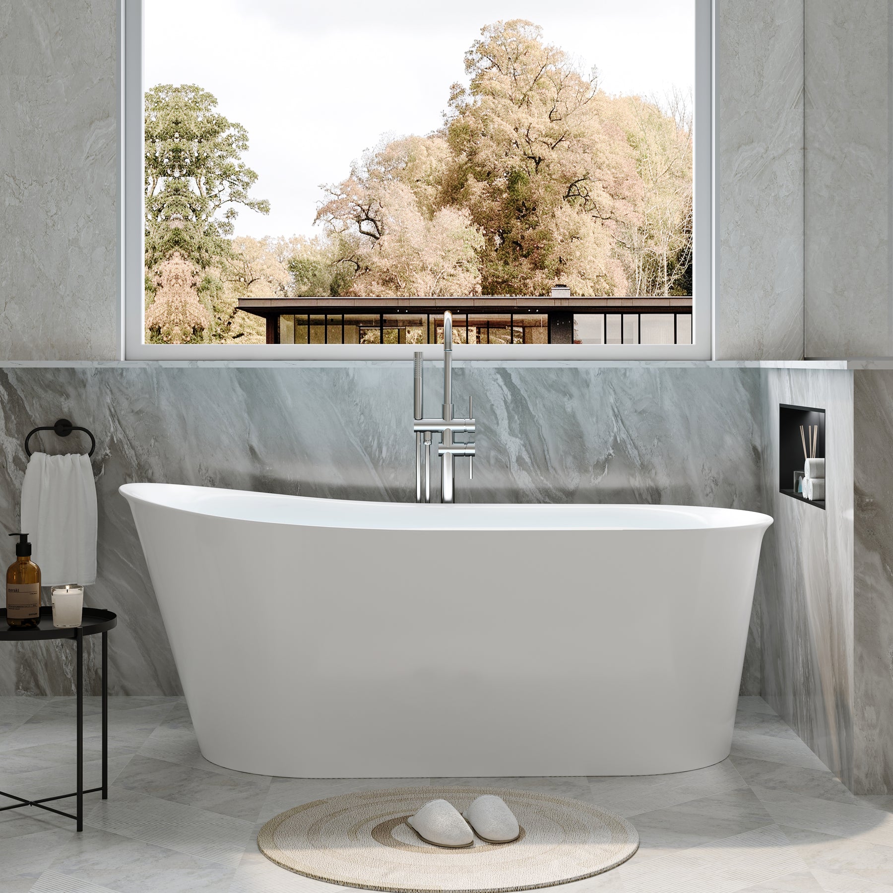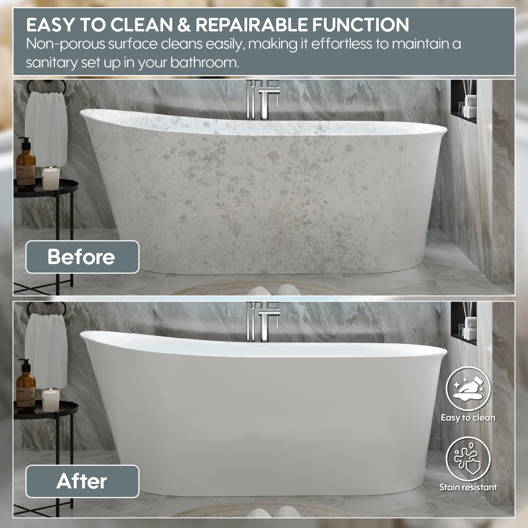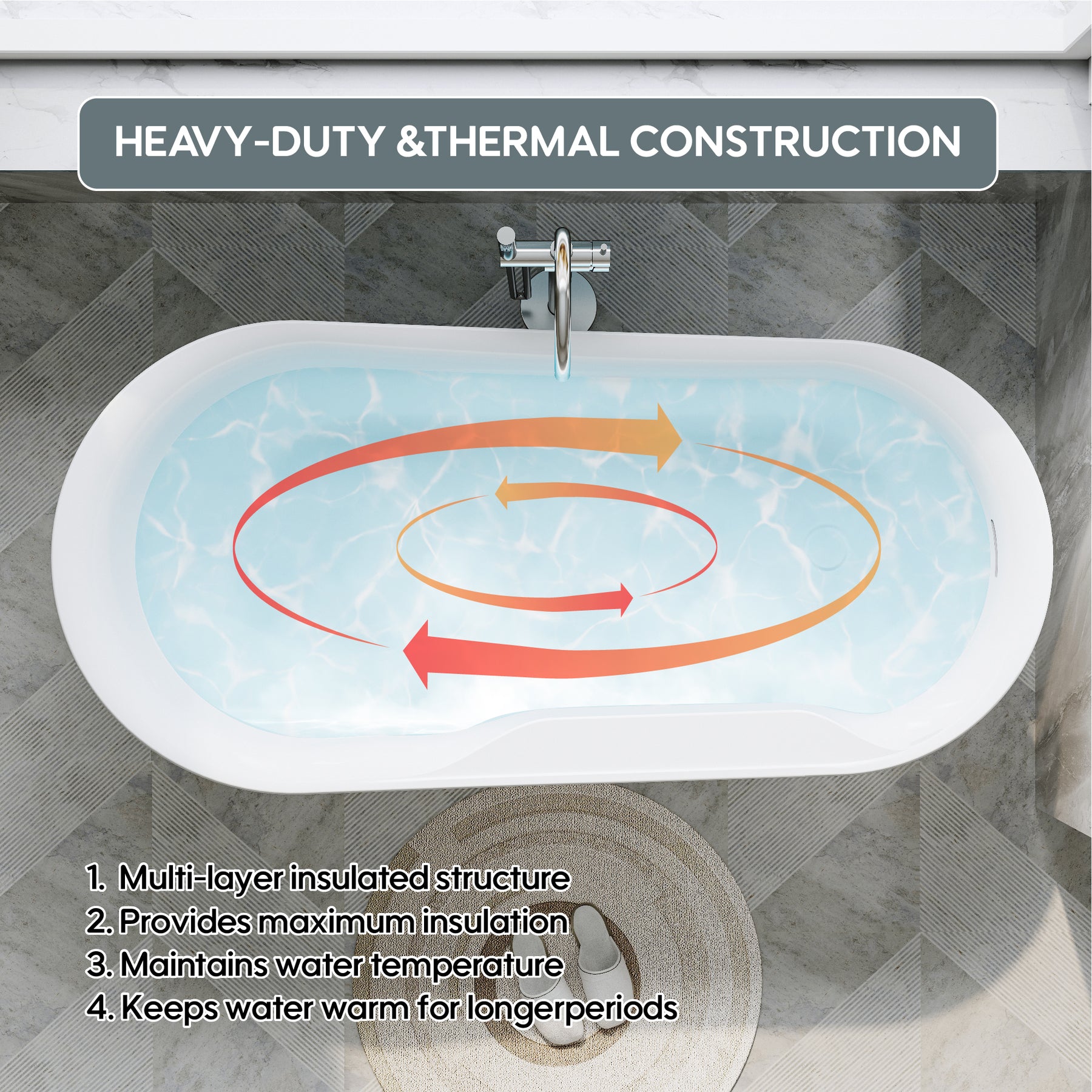 - Integrated Slotted Overflow and Matching Drain: Includes a built-in slotted overflow and a white bathtub drain for a clean, seamless design.