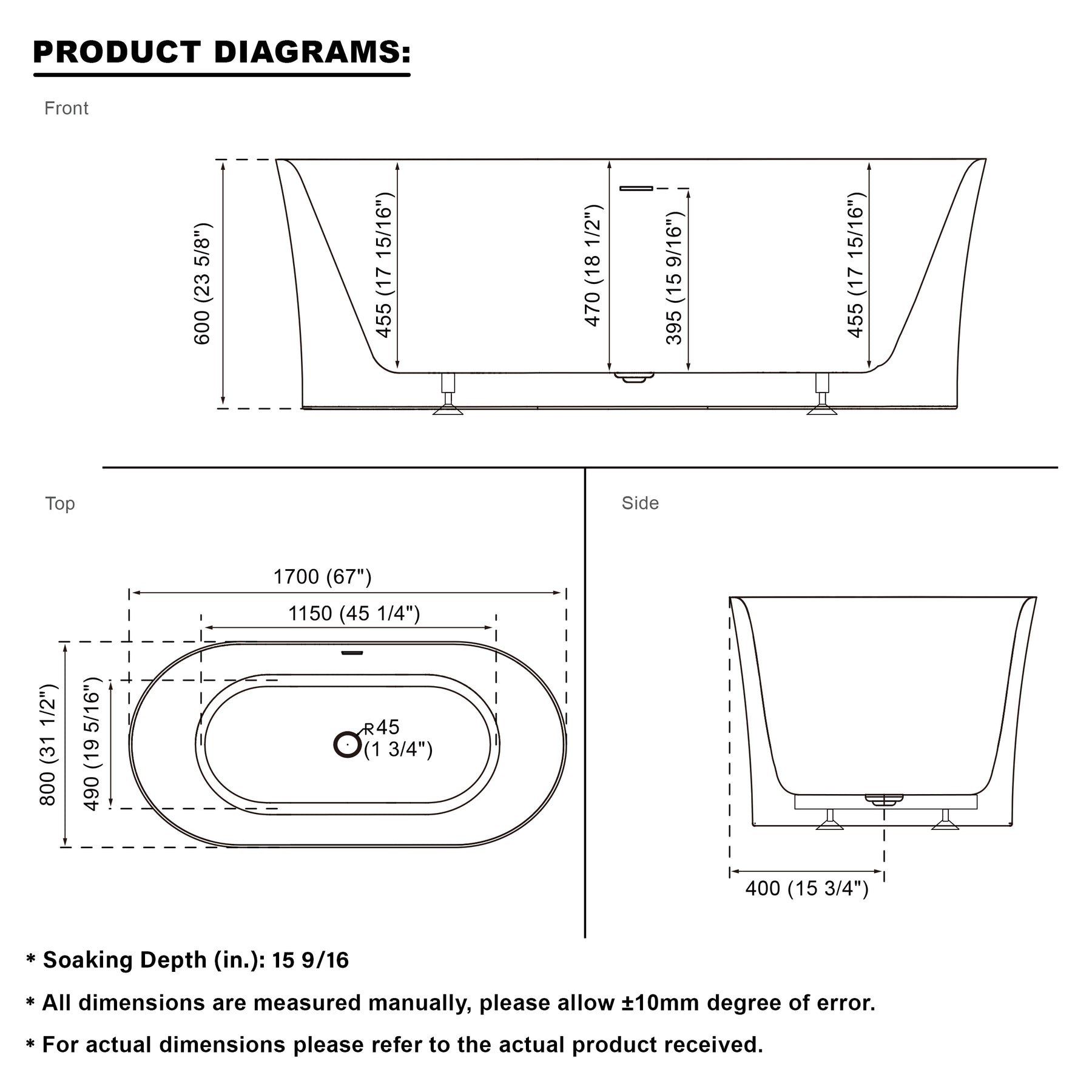 Made from 100% pure virgin acrylic, this bathtub is durable, lightweight, and easy to handle and install, ensuring lasting strength and reliability. -
