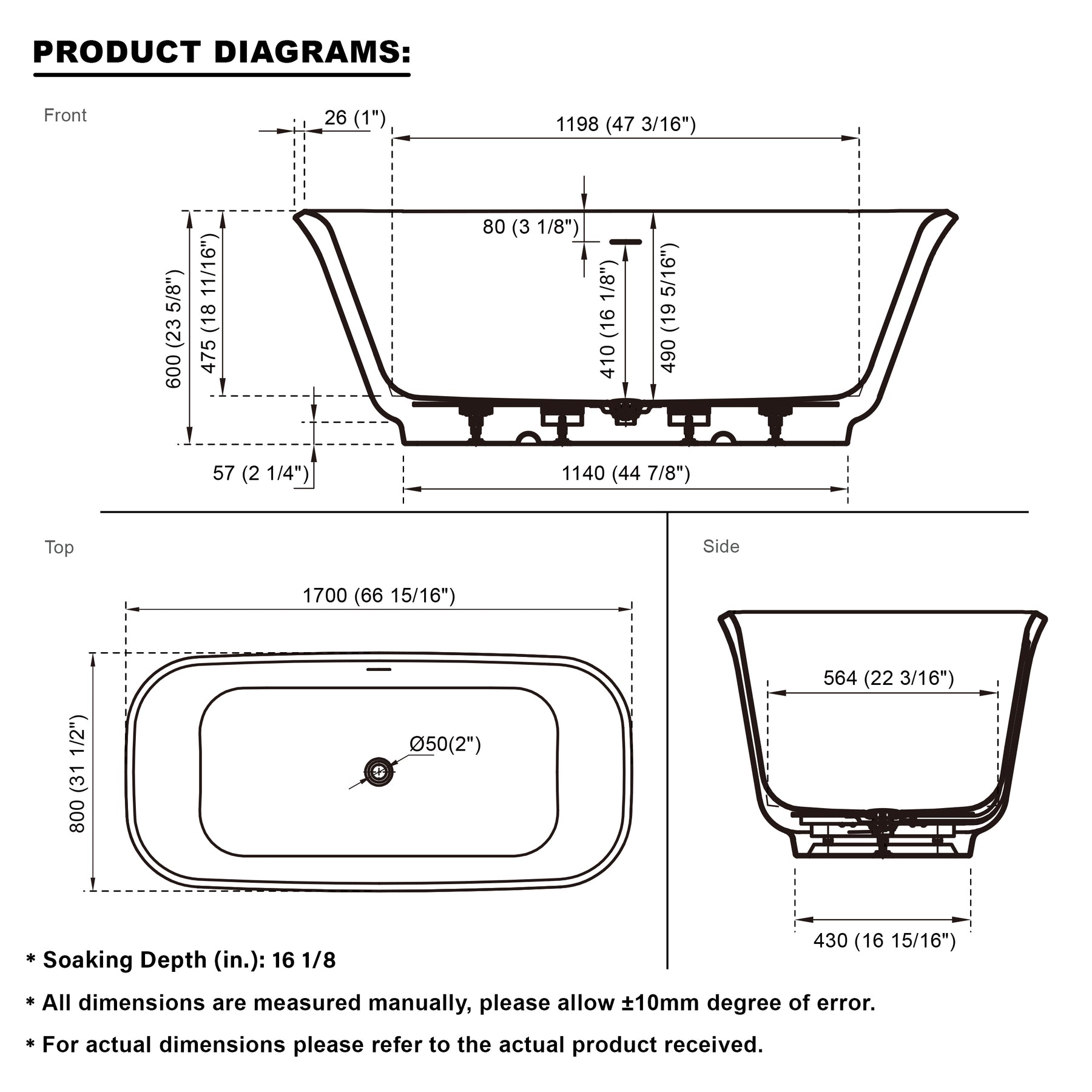 - Chrome Drain and Integrated Slotted Overflow: Features a chrome bathtub drain and an integrated slotted overflow system, offering both style and functionality with seamless water flow.