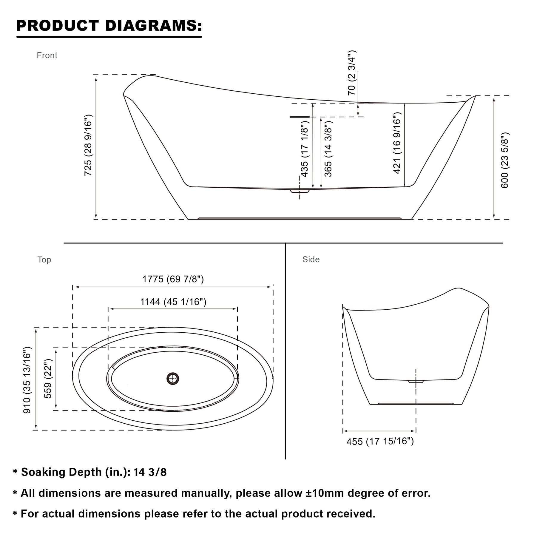 - Integrated Slotted Overflow and Matching Drain: Comes with a white integrated slotted overflow and a matching bathtub drain, ensuring a clean and seamless look.
