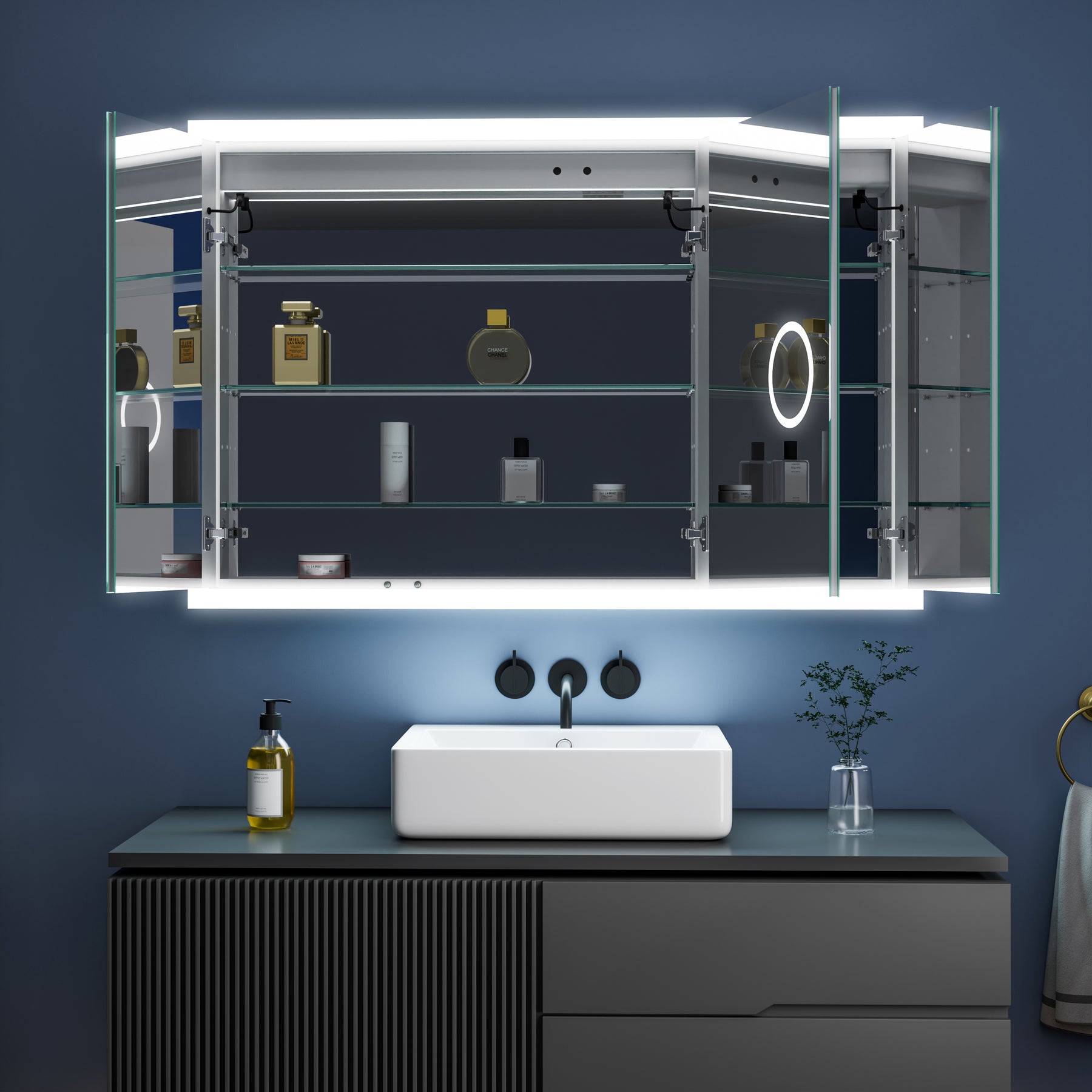 48 in. x 32 in. LED Lighted Anti-fog Mirror Medicine Cabinet Surface/Recessed Mount, Soft Close, 3X Magnifier