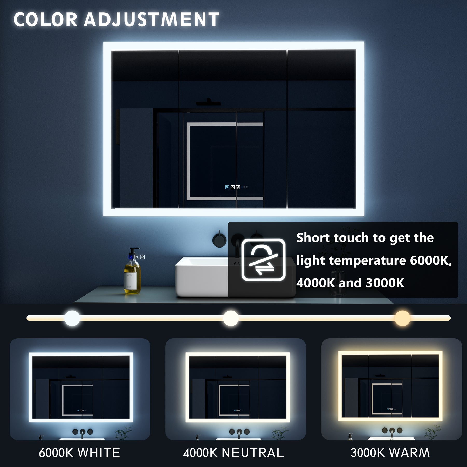 Effortless Control: Our anti-fog medicine cabinet features a triple-touch interface for seamless adjustment of brightness and color temperature.