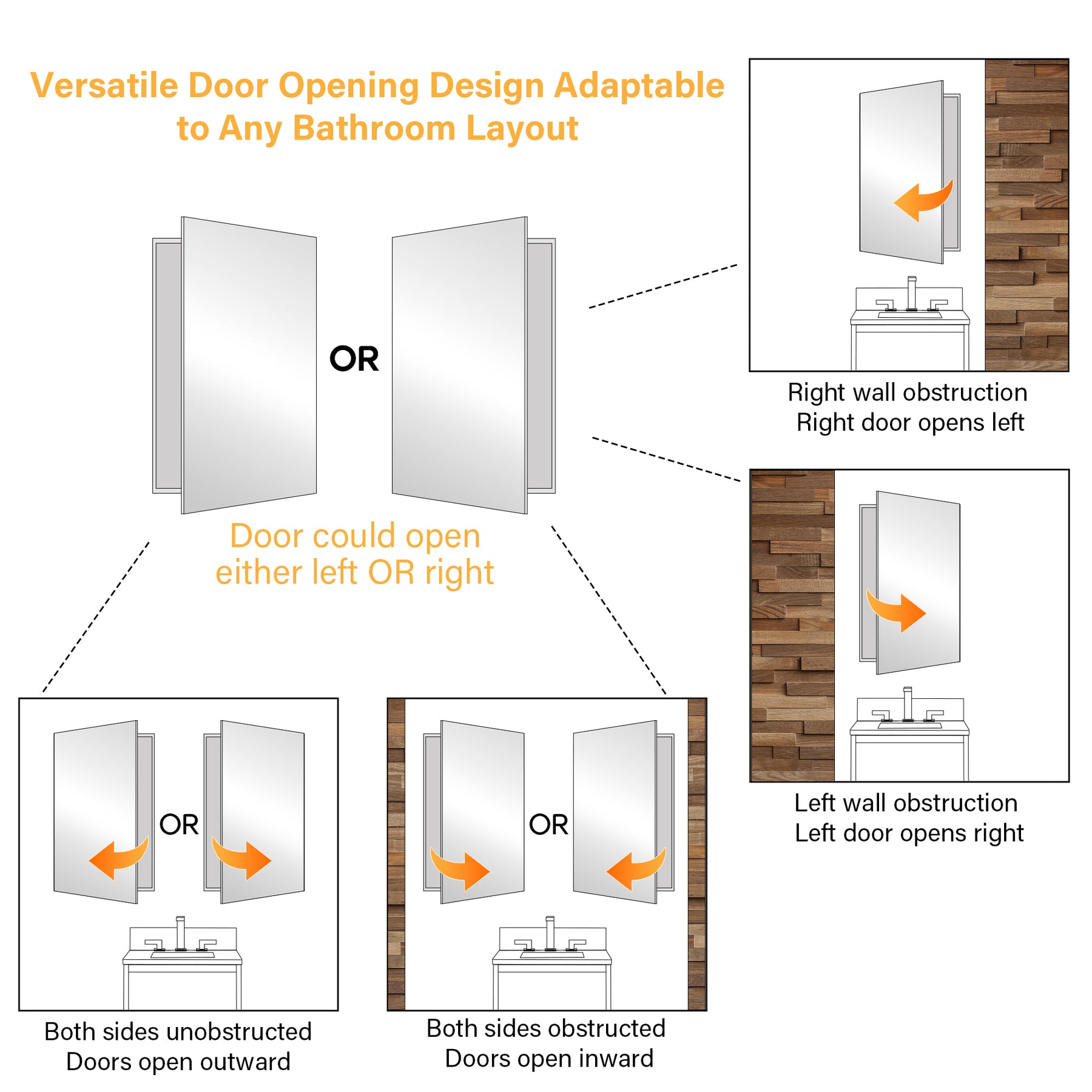 • Premium Design: Features a copper-free, explosion-proof tri-view glass mirror with soft-close doors supported by Blum hinges for smooth and quiet operation.