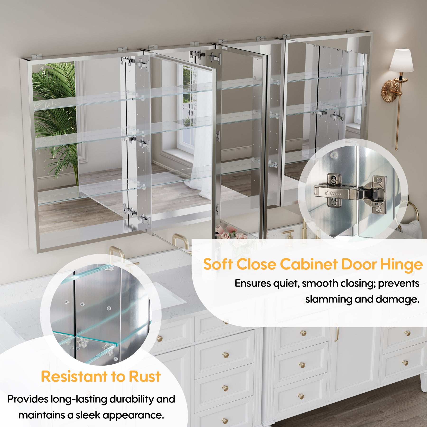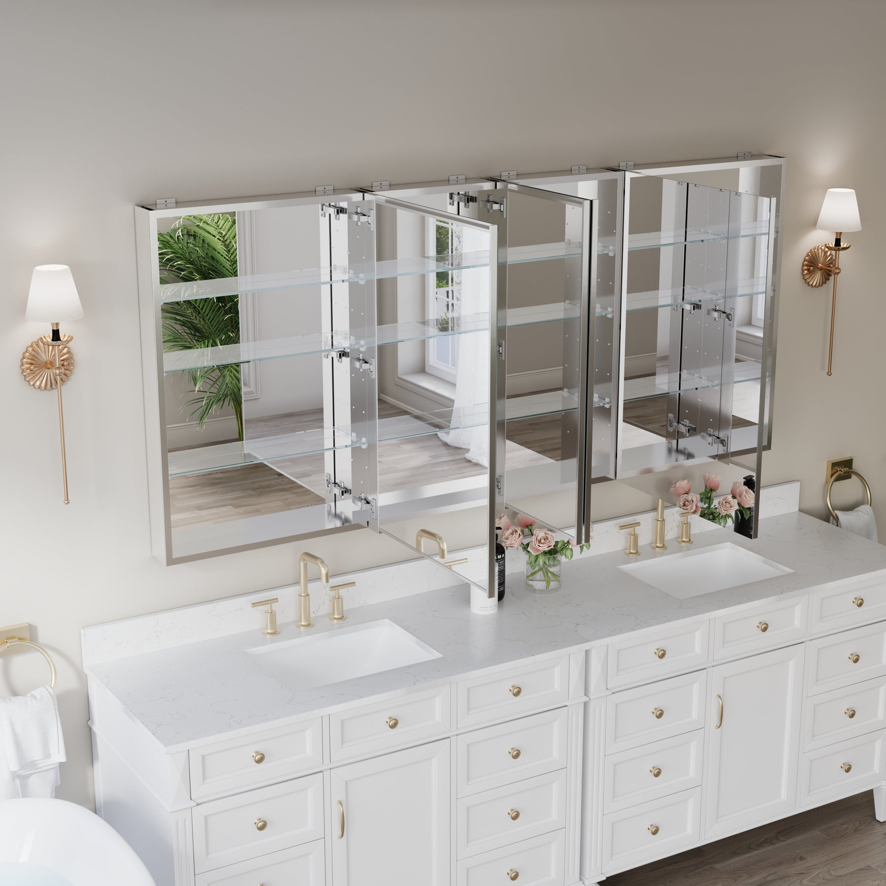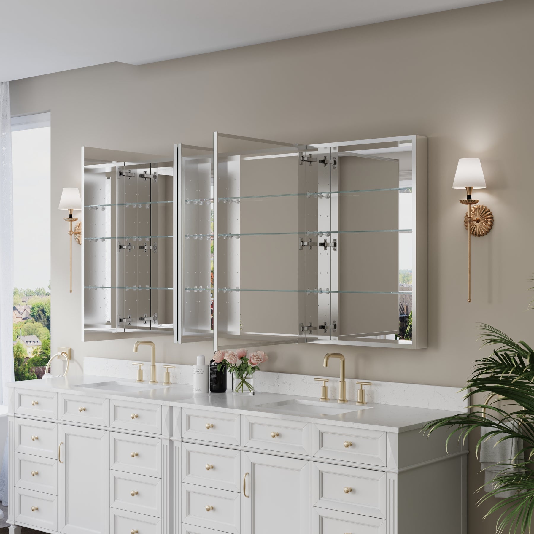 80 in. ×36 in. Copper-Free Tri-Views Mirror Medicine Cabinet with Adjustable Shelves and 4 Swing Doors
