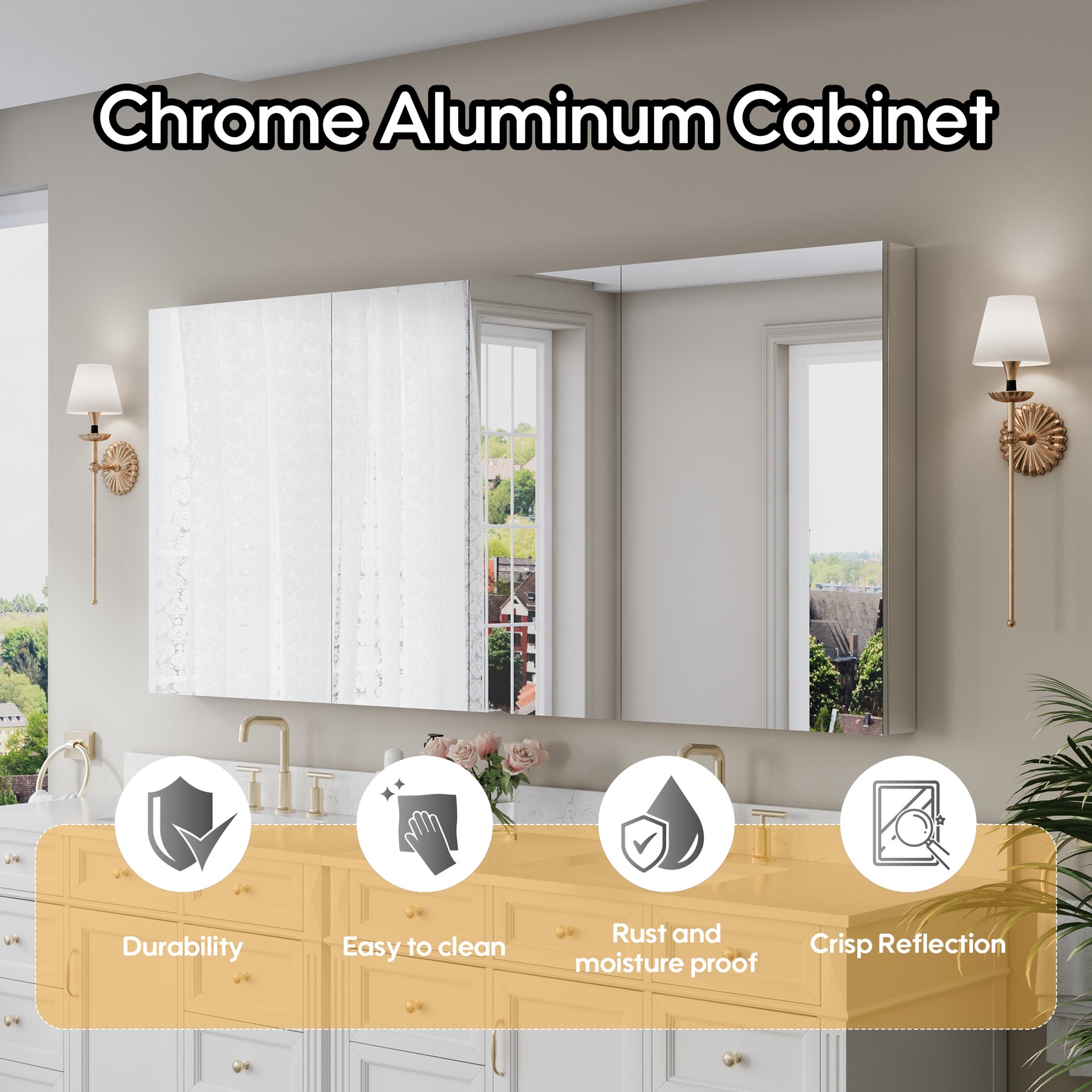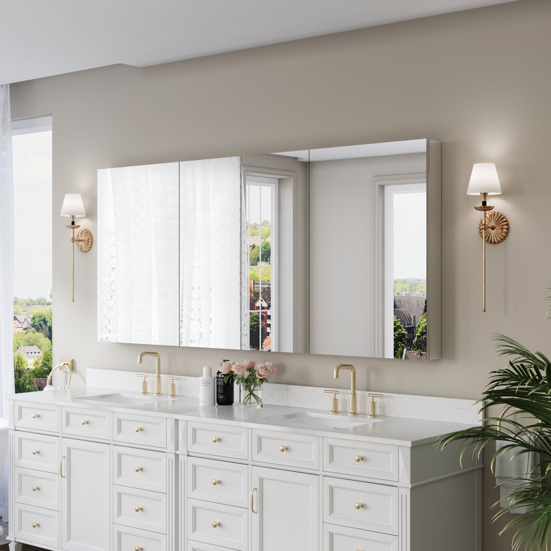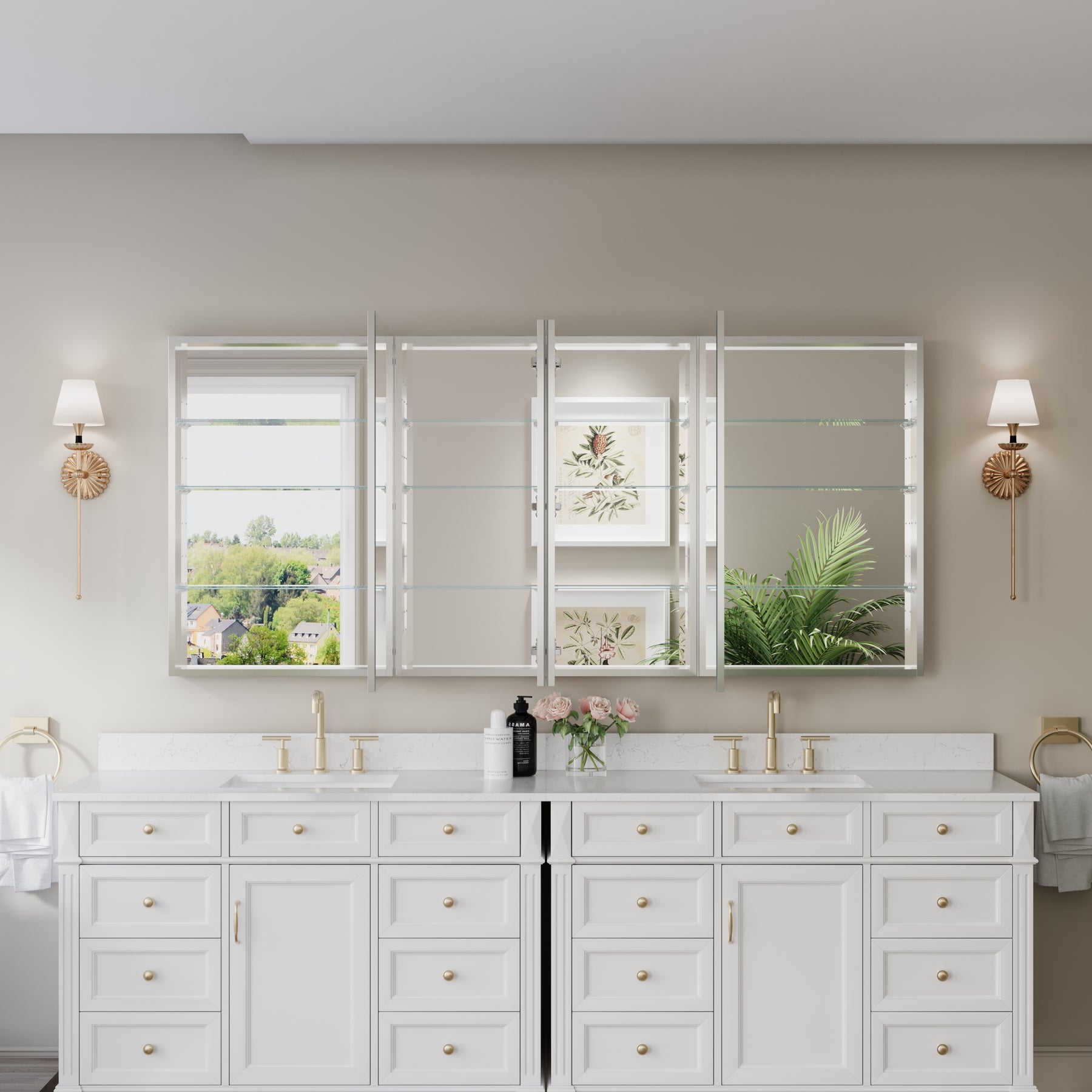80 in. ×36 in. Copper-Free Tri-Views Mirror Medicine Cabinet with Adjustable Shelves and 4 Swing Doors