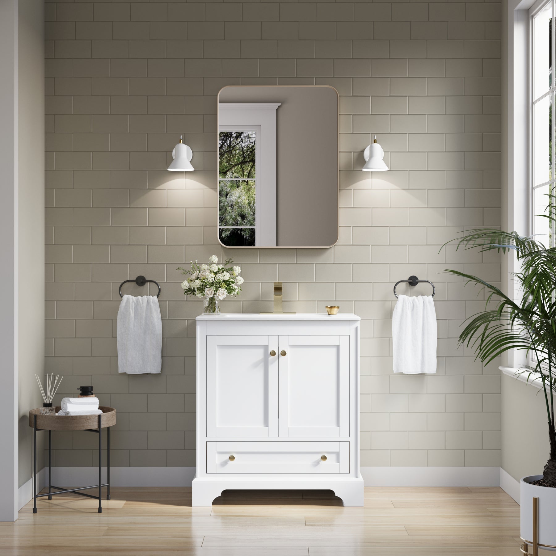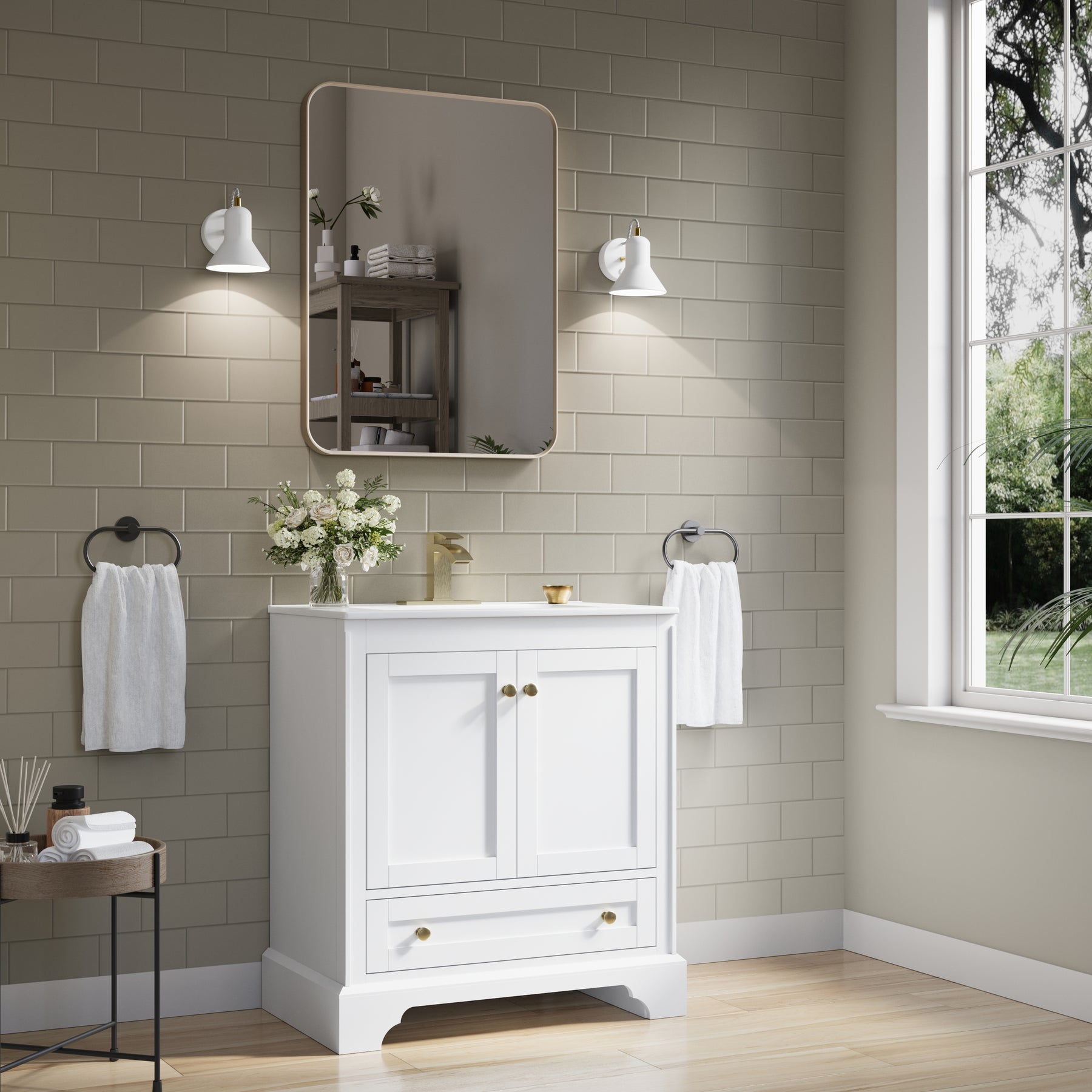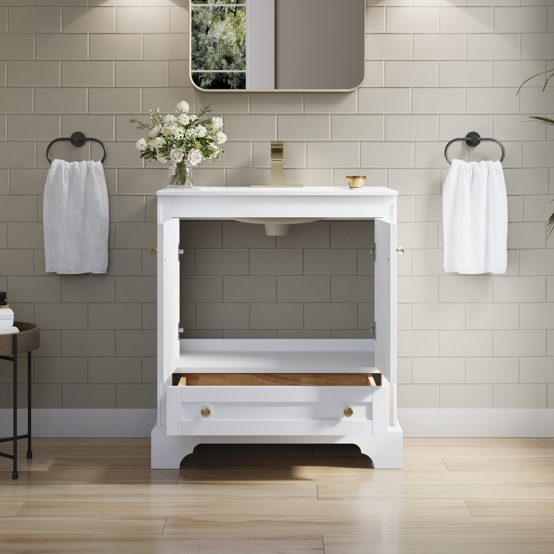- Versatile and Functional: This 30-inch white bathroom vanity set fits beautifully in both small and large bathrooms. Its compact footprint and smart storage layout help you make the most of limited space, while the generous storage capacity and elegant design also make it a stylish choice for spacious bathrooms.