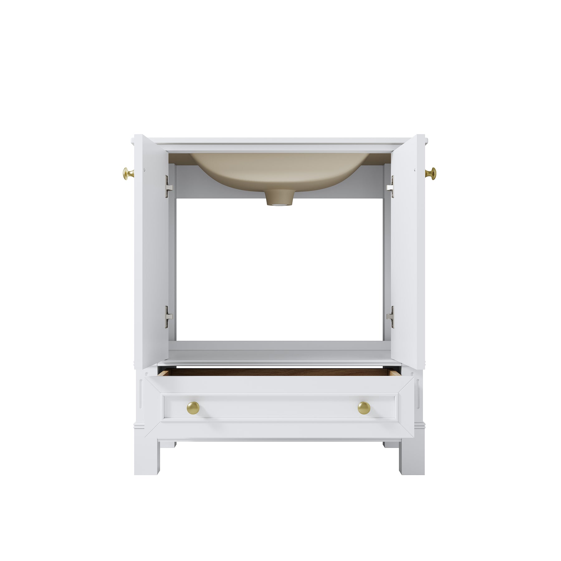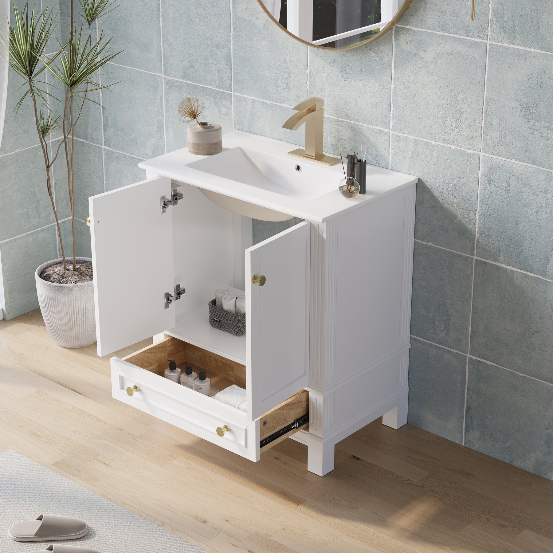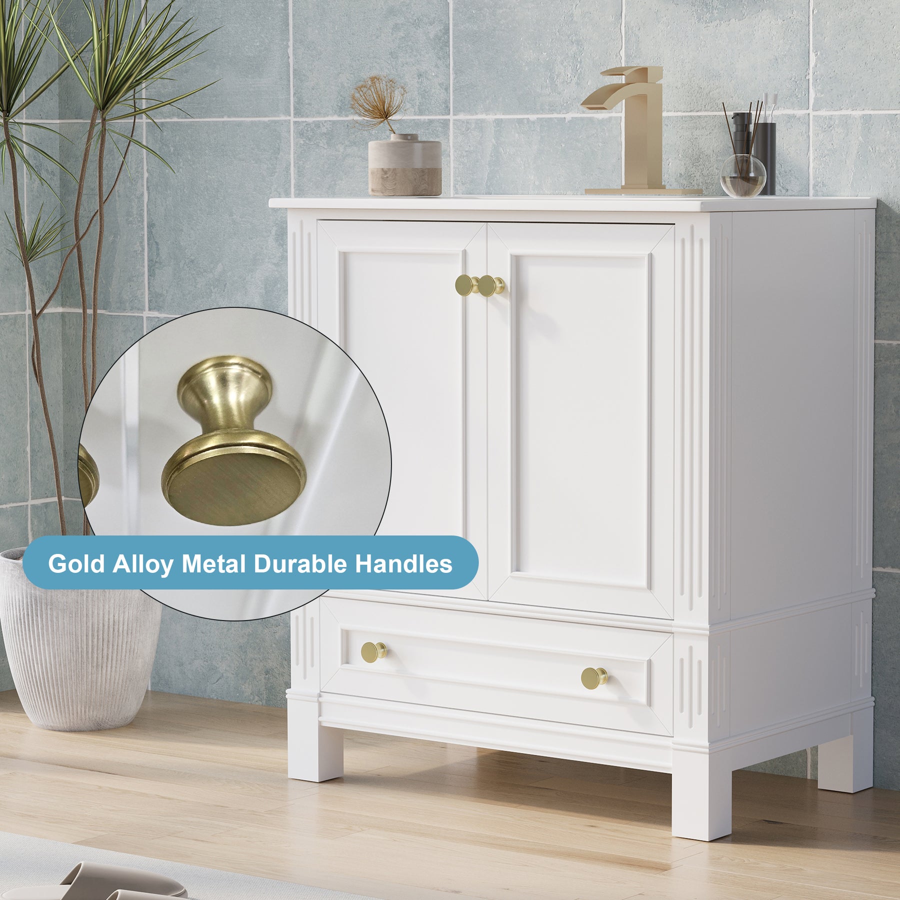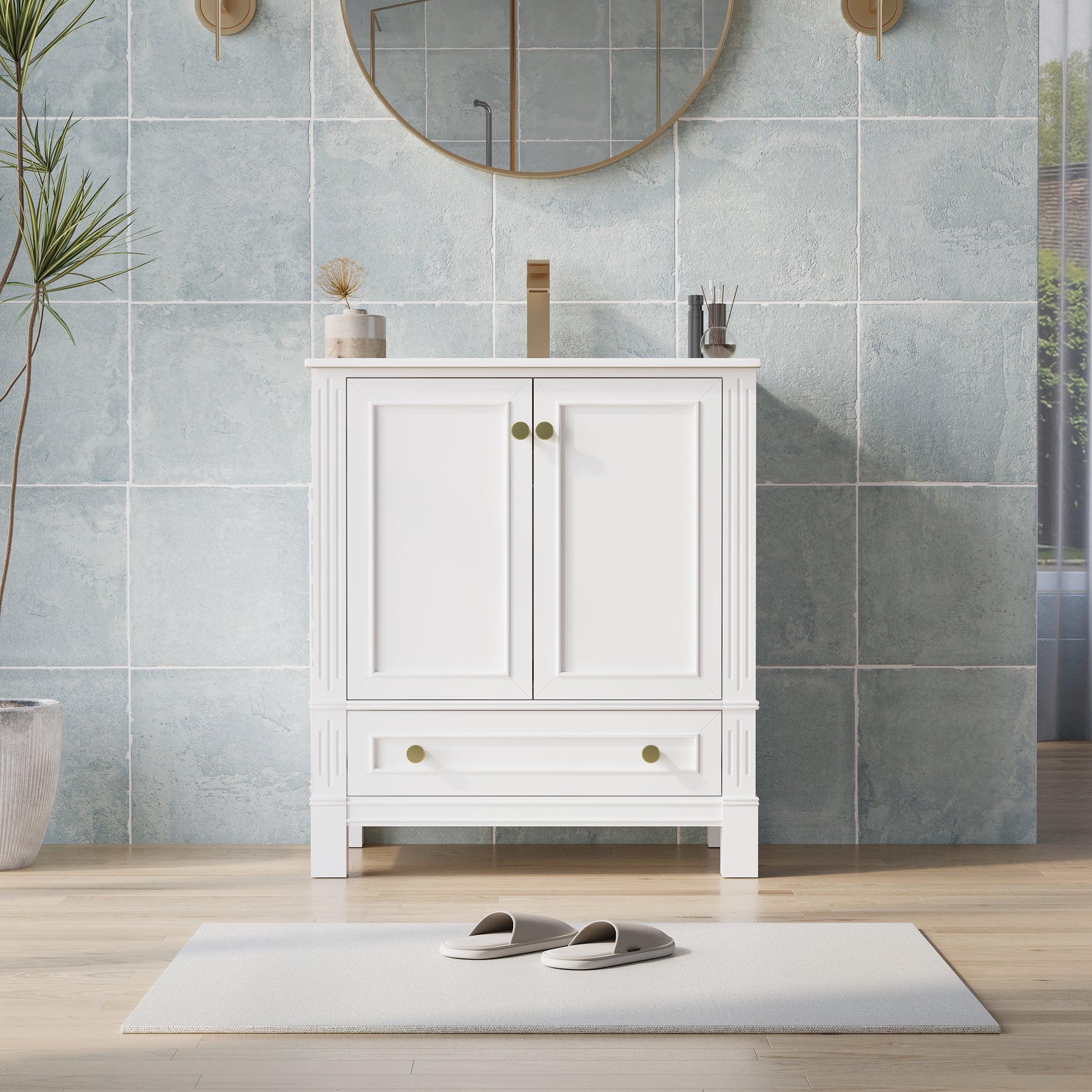 - Maximize Storage Space: The white bathroom vanity with ceramic basin features 1 drawer and 2 doors, providing convenient storage for daily essentials such as tissues, towels, and shower gel. Easy to access and well-organized, it offers ample storage even in compact spaces.