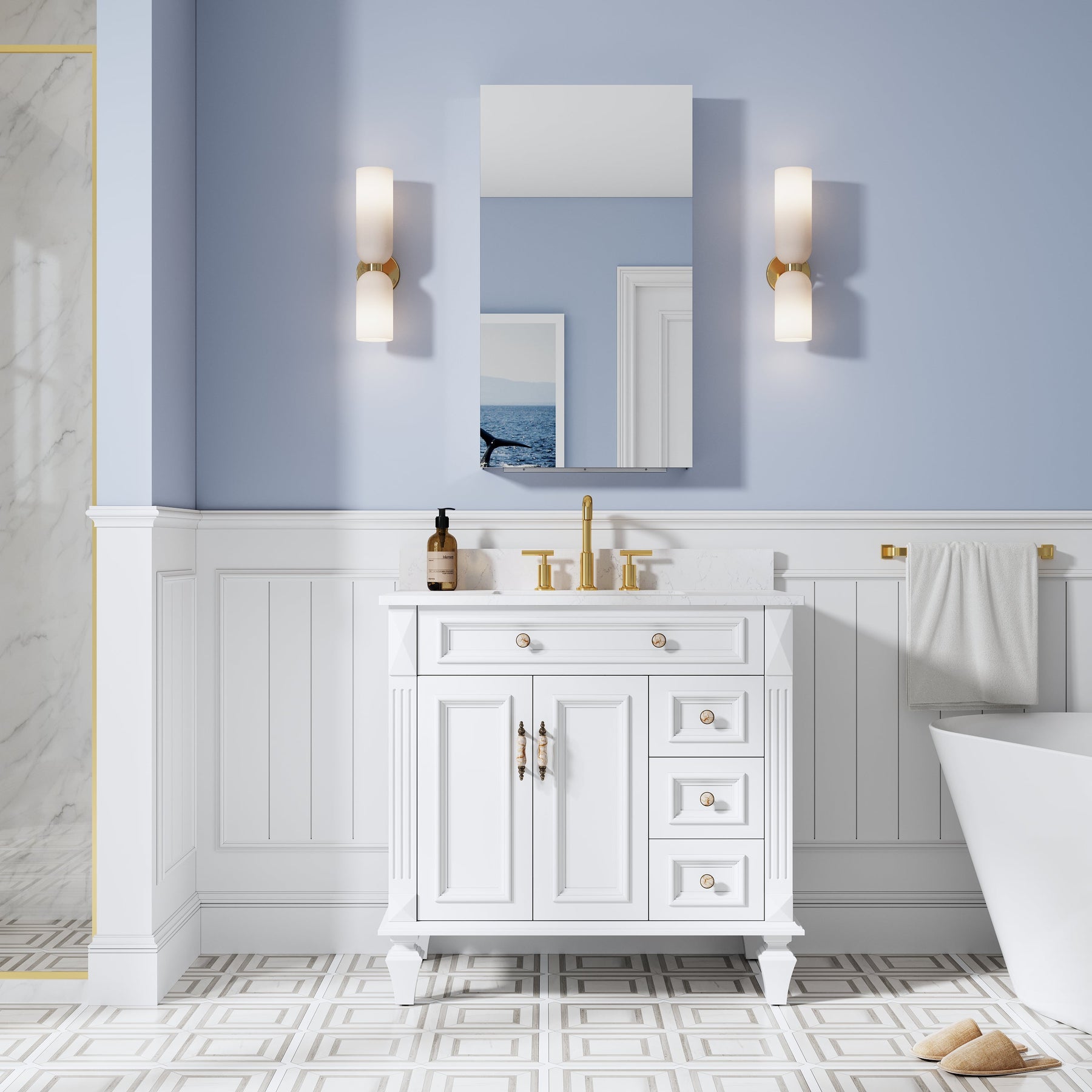 20 in. ×36 in. Copper-Free Tri-Views Mirror Medicine Cabinet, Recessed/Surface Mount and Left Swing Door