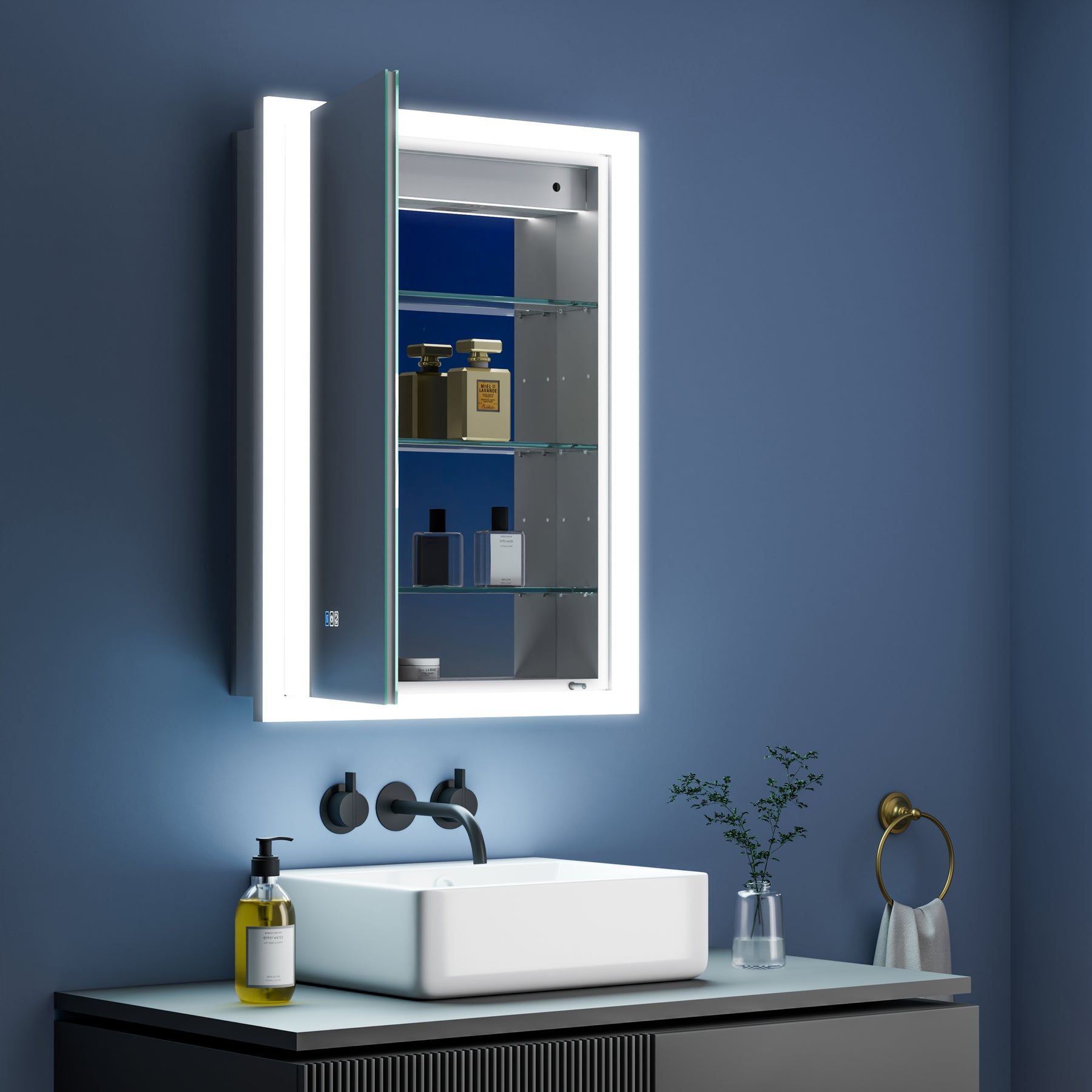 Effortless Control: Our anti-fog medicine cabinet features a triple-touch interface for seamless adjustment of brightness and color temperature.