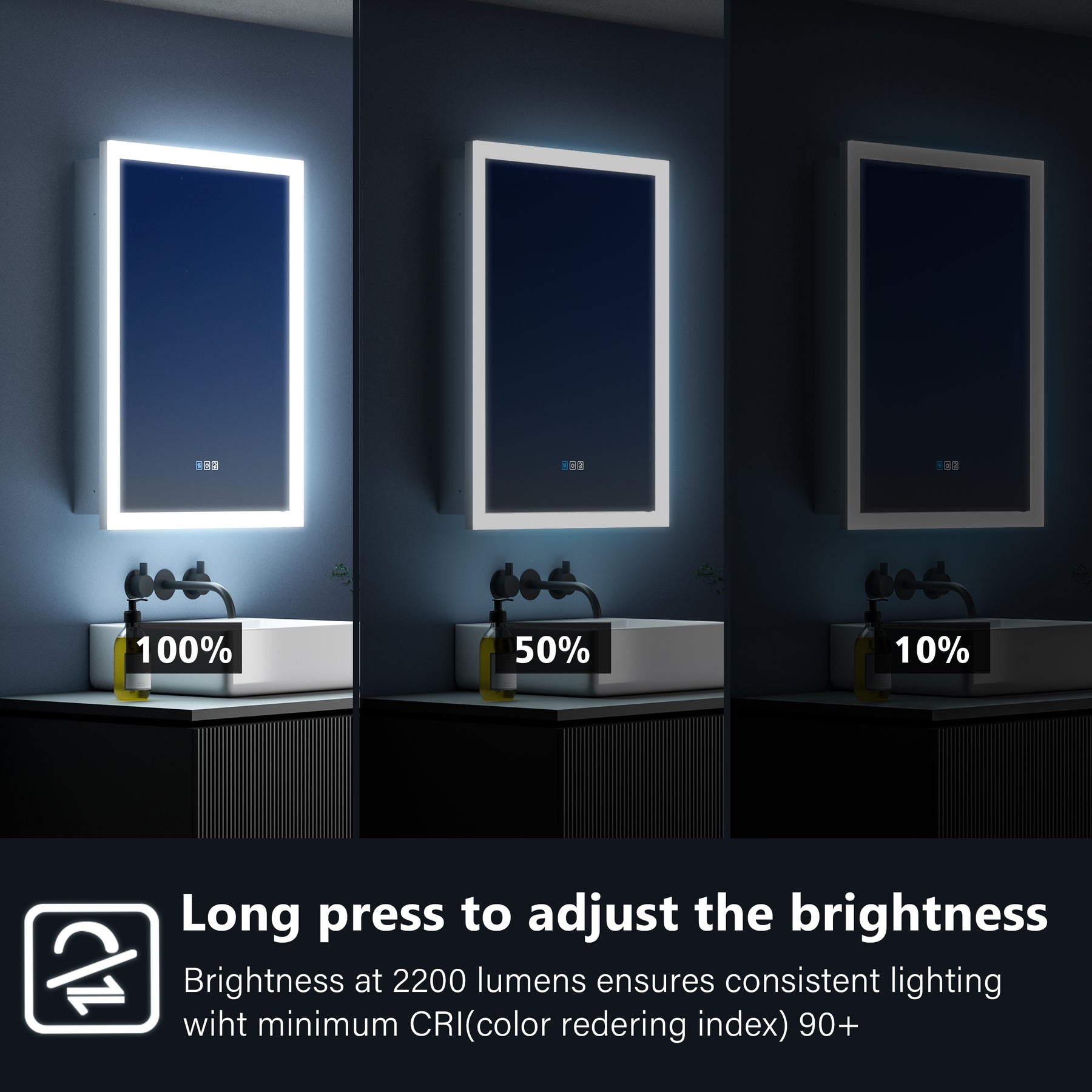 Effortless Control: Our anti-fog medicine cabinet features a triple-touch interface for seamless adjustment of brightness and color temperature.