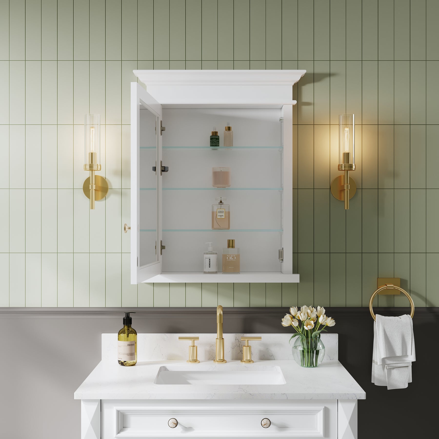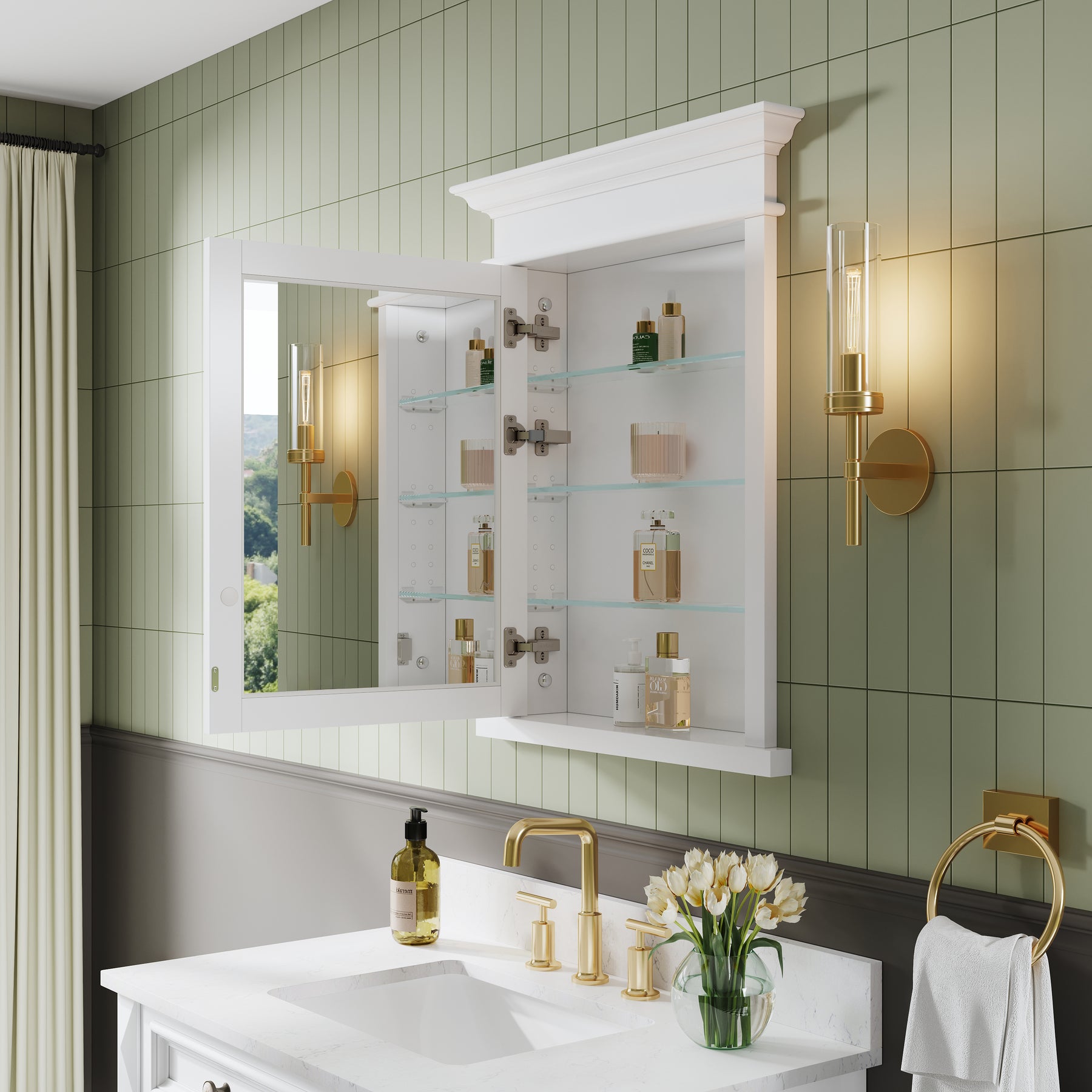- Anti-Fog Glass: Maintains a clear, fog-free reflection in any bathroom environment.