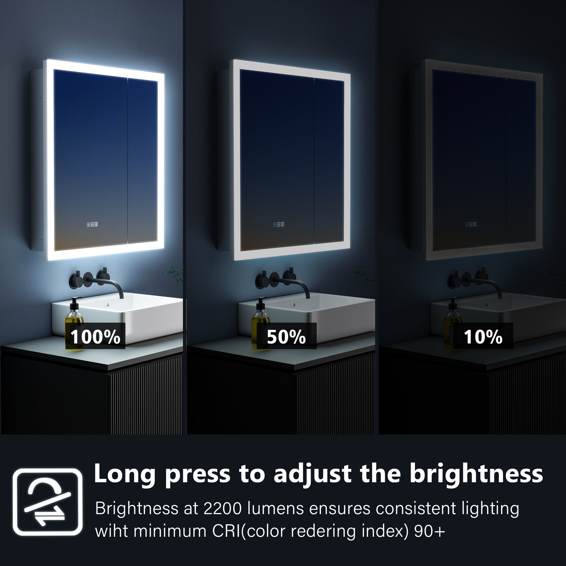 Effortless Control: Our anti-fog medicine cabinet features a triple-touch interface for seamless adjustment of brightness and color temperature.