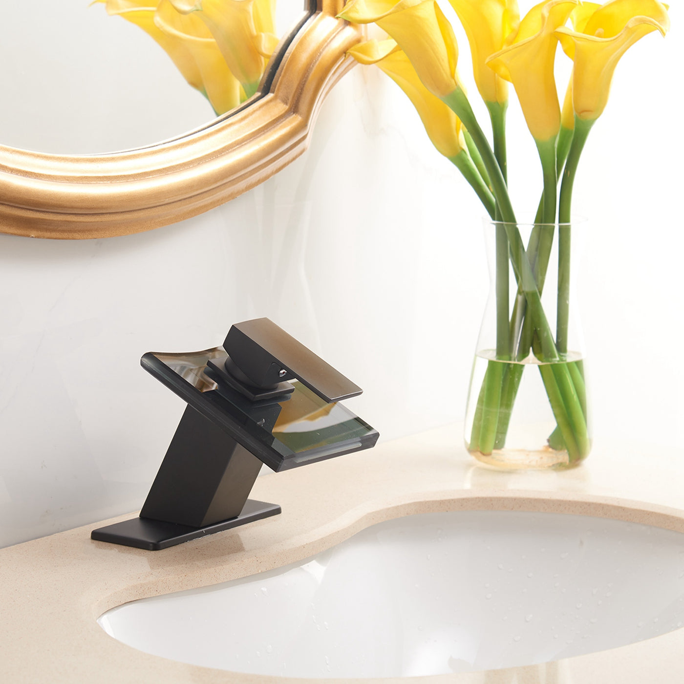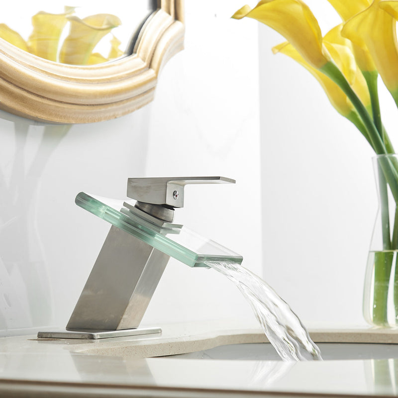 - Waterfall Spout : The bathroom faucet provides a clear and steady laminar stream, that provides a beautiful water presentation. Single lever design for effortless flow and temperature control