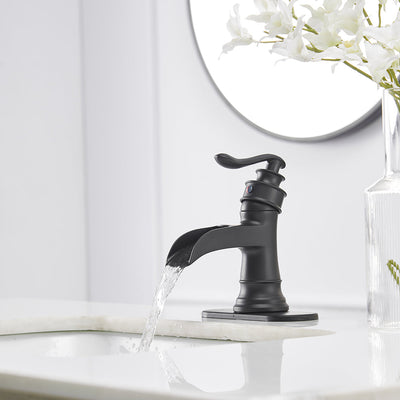- Waterfall Spout : The bathroom faucet provides a clear and steady laminar stream, that provides a beautiful water presentation. Single lever design for effortless flow and temperature control